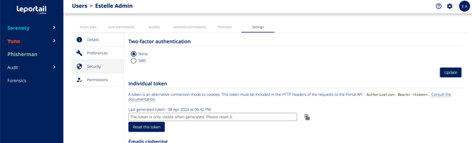 - To access these settings, go to the top right of the Portal interface (on your initials) and click on Account settings