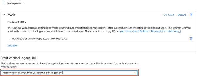 - Configure the front-channel logout URL : https://leportail.xmco.fr/api/account/oicd/logged_out