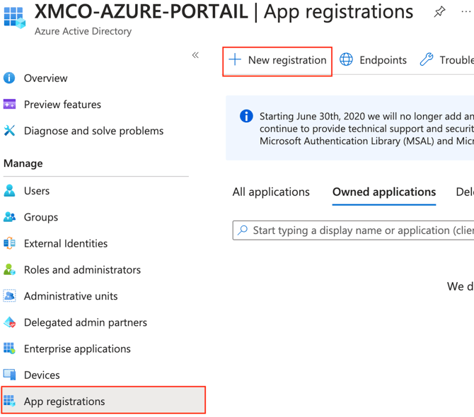 - In the Azure AD administration panel, select the App registrations menu