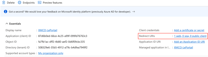 - Note the Client ID that is referenced Application (client) ID