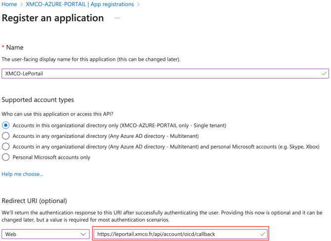 - Enter the following URI : https://leportail.xmco.fr/api/account/oicd/callback