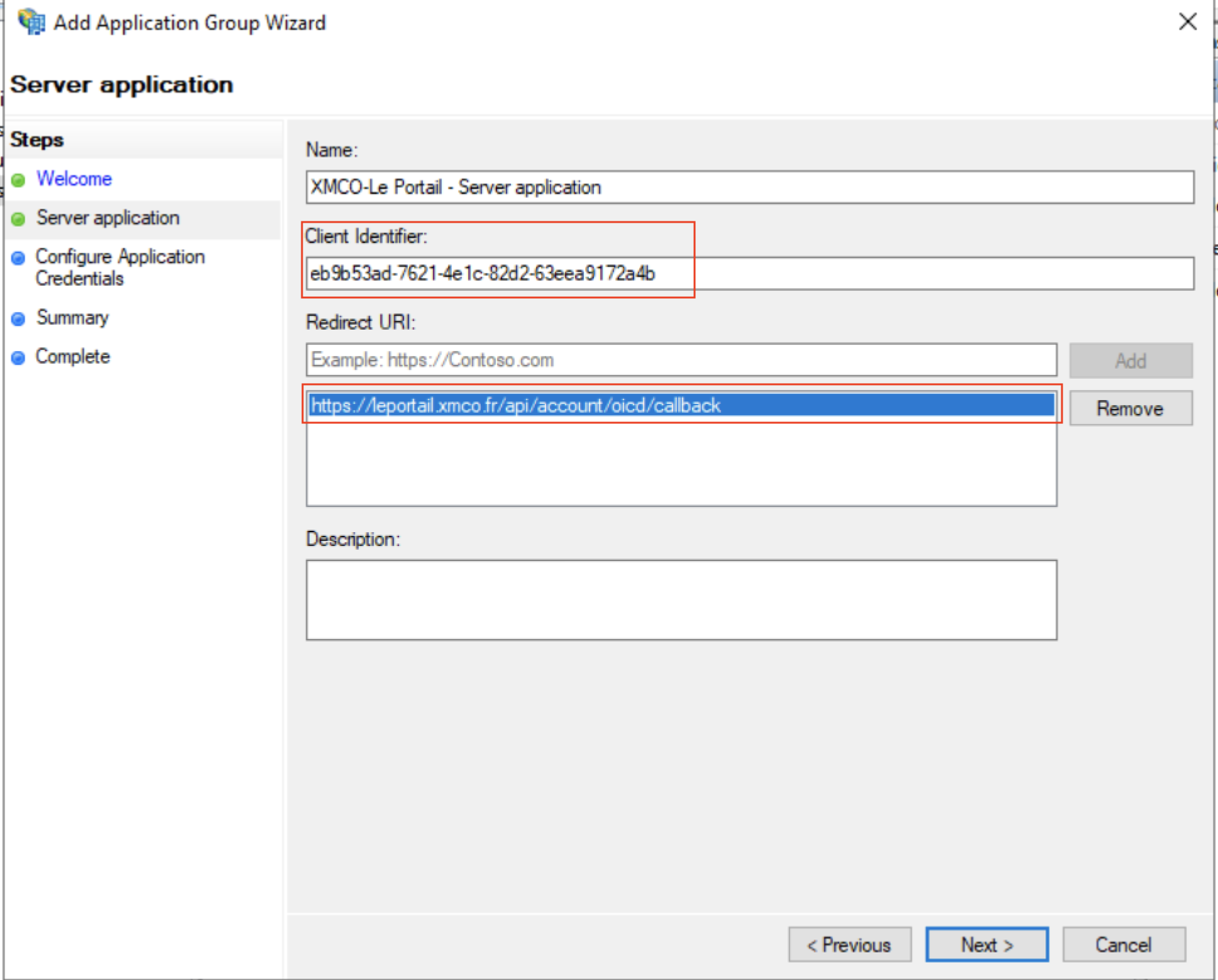 - Enter the name of the application, for exemple XMCO-Le Portail
