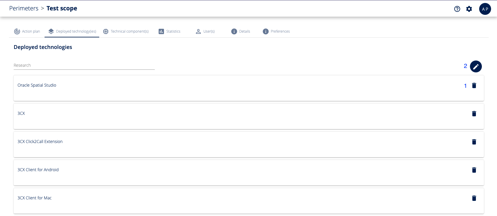 - a tab summarising the statistics related to your scope (number of scopes, technologies monitored, registered users, etc.)