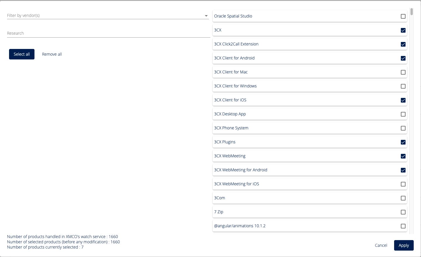 In the add window you will find the list of all the technologies currently monitored by XMCO.