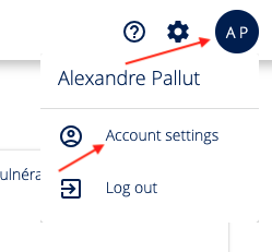 At the top right of your screen, click on your initials . This will take you to the Account Settings menu.