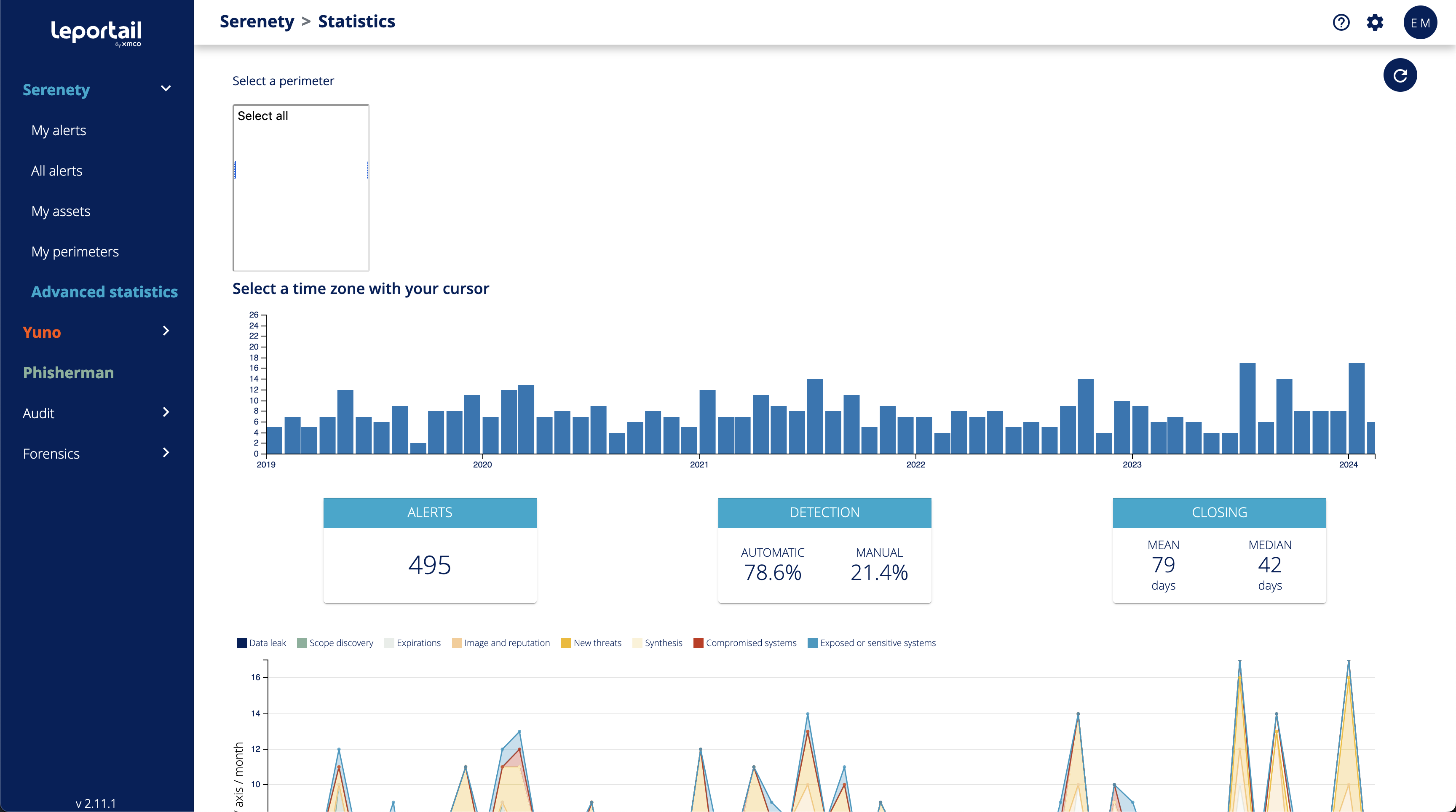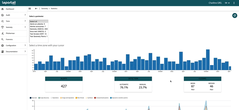- 3 inserts showing the main statistics of your monitoring (number of alerts since you subscribed to the service, types of detection, duration of alert closure)