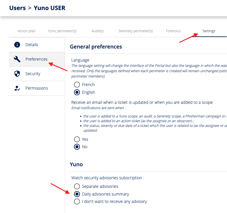 If you would like to view the Yuno bulletins only on the Portal, or change the format in which the emails are sent, follow these steps: