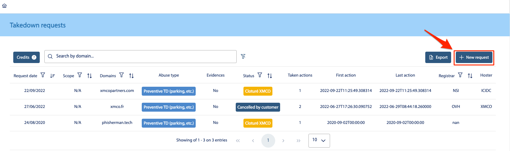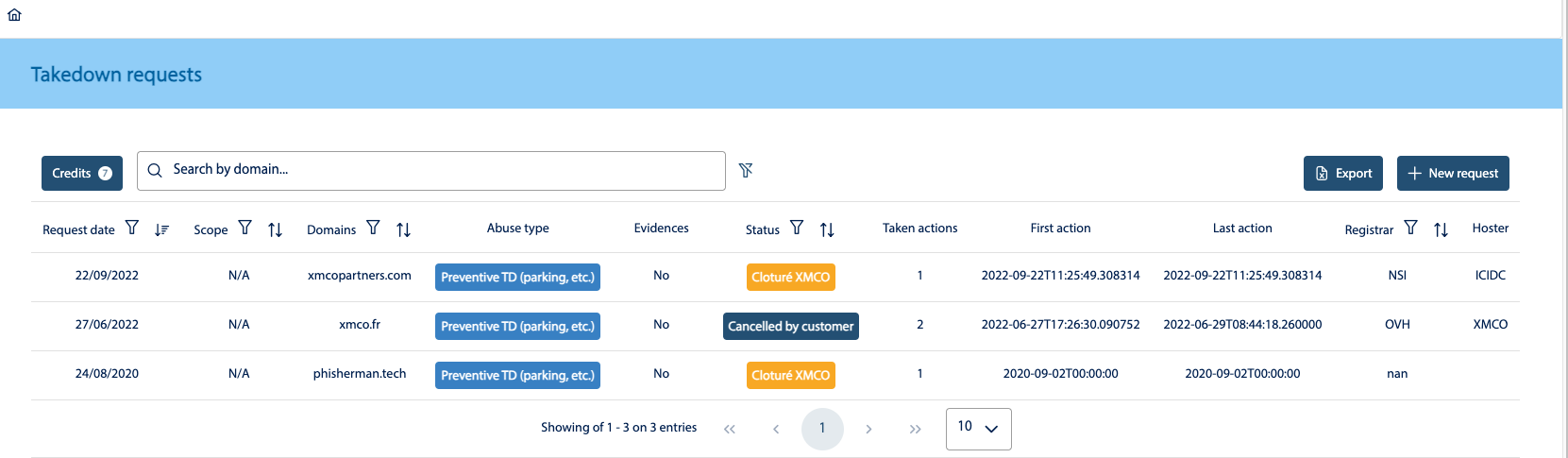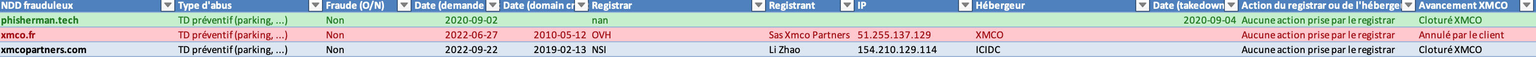 As an official CERT, XMCO is able to request the closure of malicious domains (phishing, president scams, etc.) from the registrars with which these domains are registered. Over the years, we have developed a network of contacts within these registrars to help us deal with these domains.