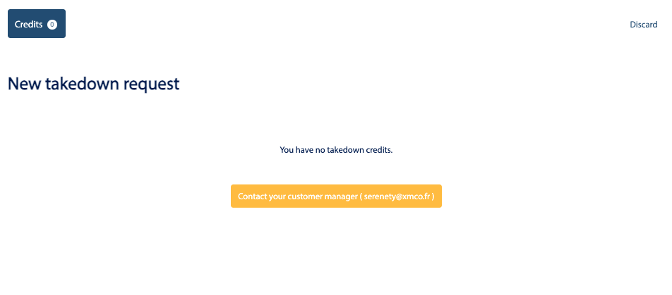 - At this stage, you can no longer cancel the request in the interface (but you can still do so by email). However, you can still change the type of Takedown request.