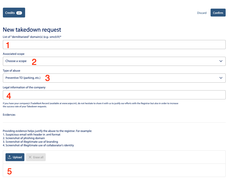 Step 3 : Complete the "New takedown request" side page