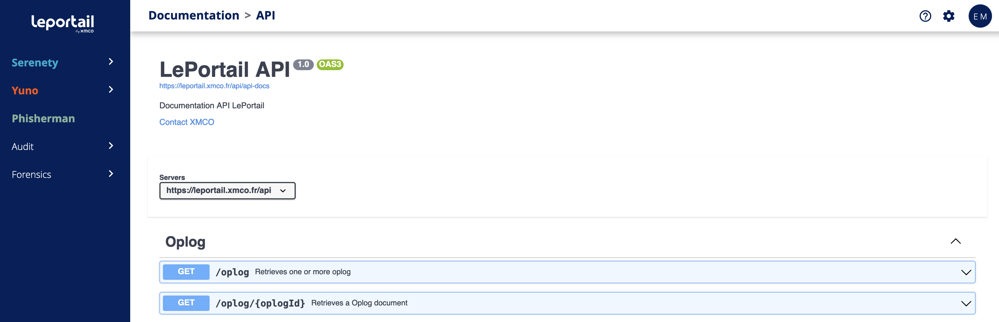 To use a route described by Swagger, use the following url : https://leportail.xmco.fr/api/