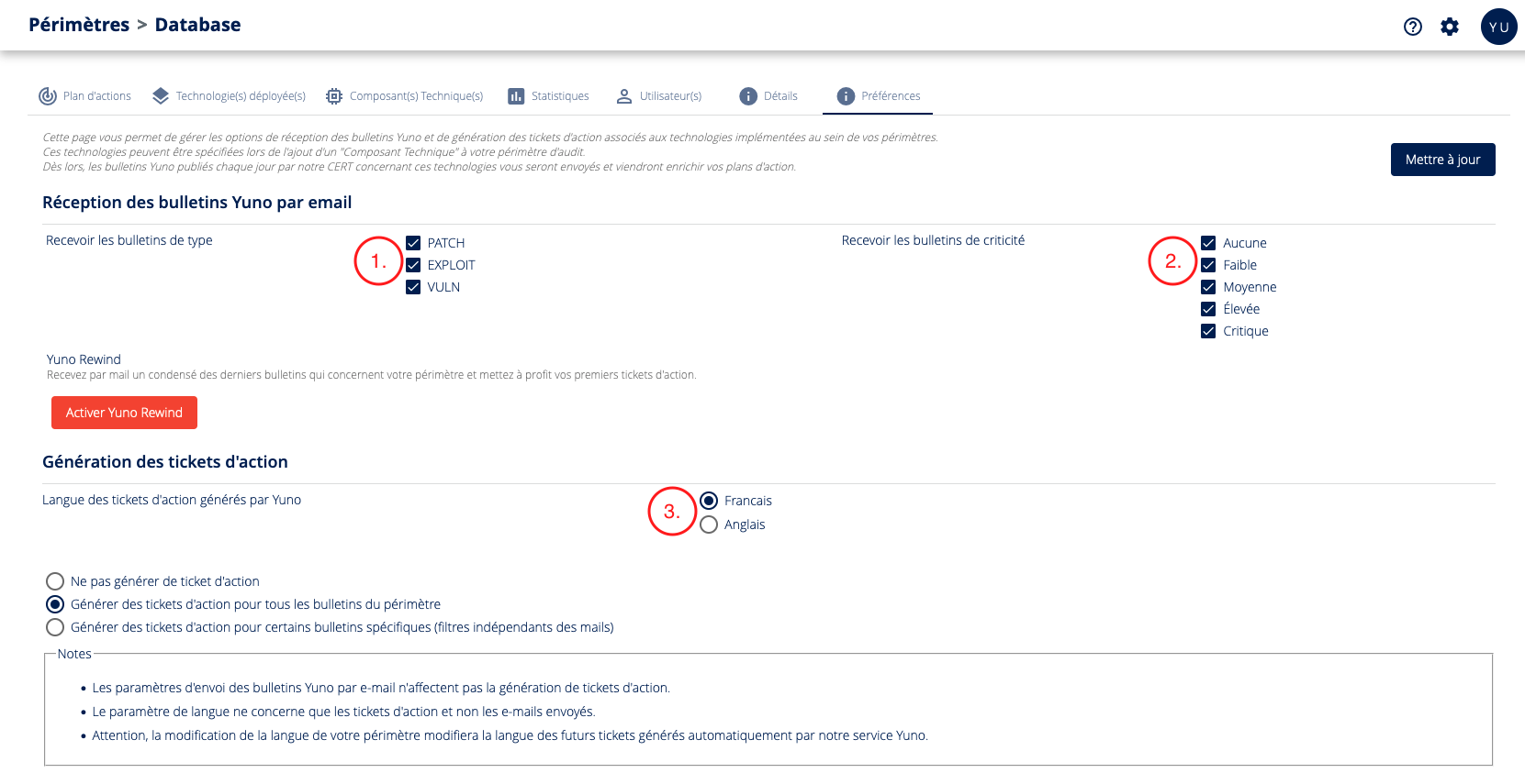 - Sélectionner la criticité des bulletins que vous souhaitez recevoir.