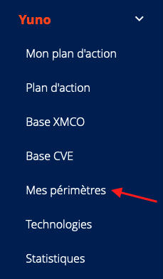 - Depuis l'onglet Yuno, rendez vous sur la page "Mes périmètres"