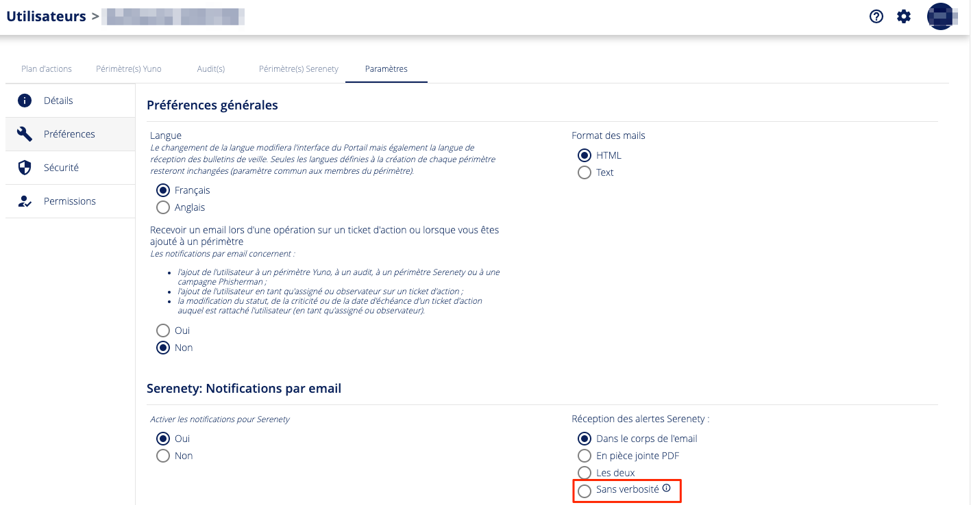 Sélectionner l'option "sans verbosité" dans le menu "Serenety: Notifications par email" et sauvegarder vos changements