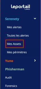 Après vous être connecté sur le Portail, cliquer sur Mes assets dans le menu Serenety.