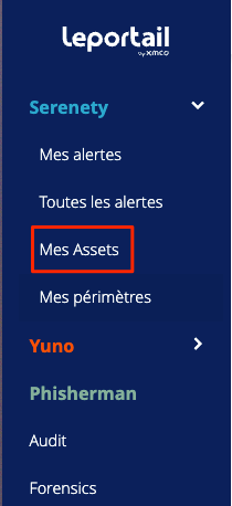 Après vous être connecté sur le Portail, cliquer sur Mes Assets dans le menu Serenety