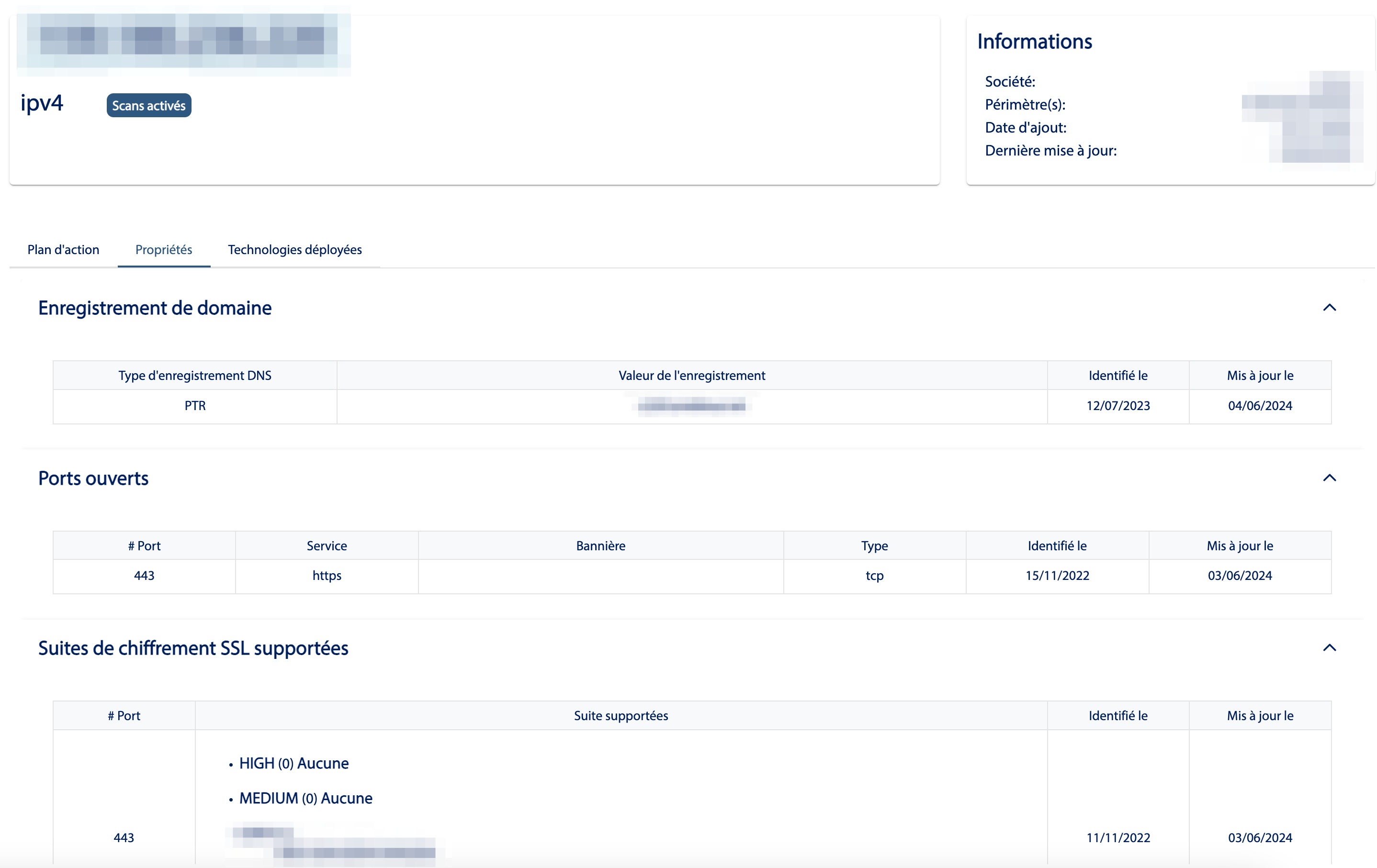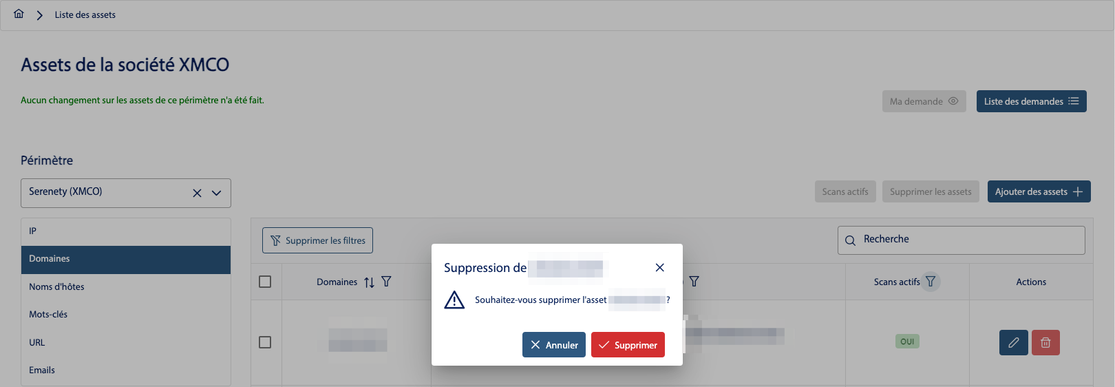- En étant sur un périmètre, vous pouvez visualiser tout les assets actuellement surveillés par le CERT XMCO.