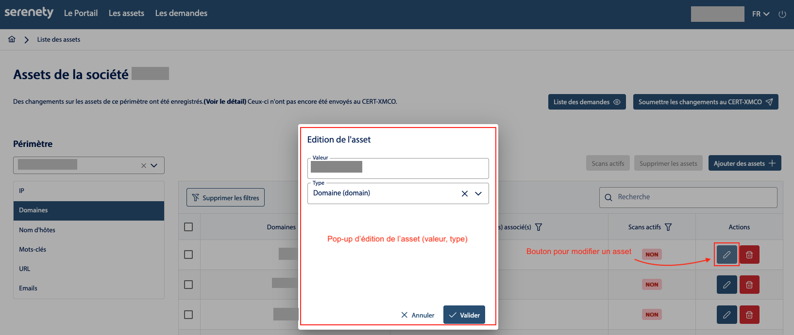 Dans cet article, vous découvrirez comment créer une demande d'ajout, de modification ou de suppression d'assets sur vos périmètres Serenety.