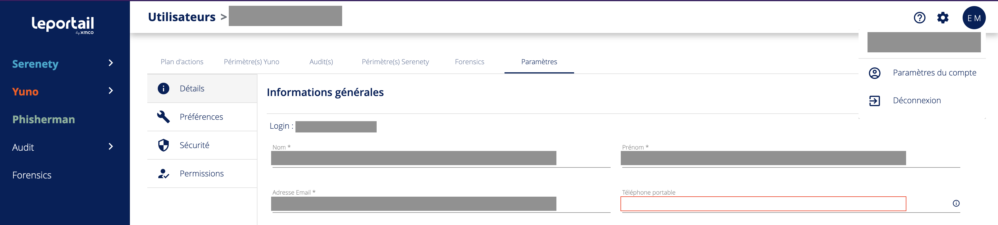 Le Portail propose comme second facteur d’authentification la réception de SMS. Pour cela, il est indispensable que votre numéro de téléphone soit renseigné dans vos informations de compte.