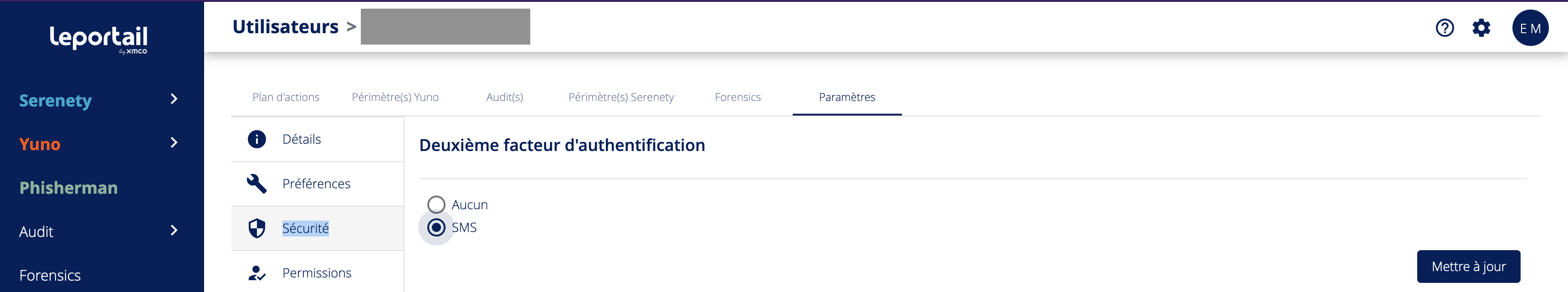 - Cocher l'option "SMS" dans la section Deuxième facteur d'authentification