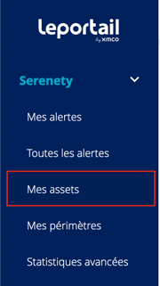 La page de visualisation de vos assets vous permet d'identifier et de suivre les assets surveillés par Serenety. Elle est accessible depuis le menu à gauche, dans le module Serenety, sous le nom "Assets" :