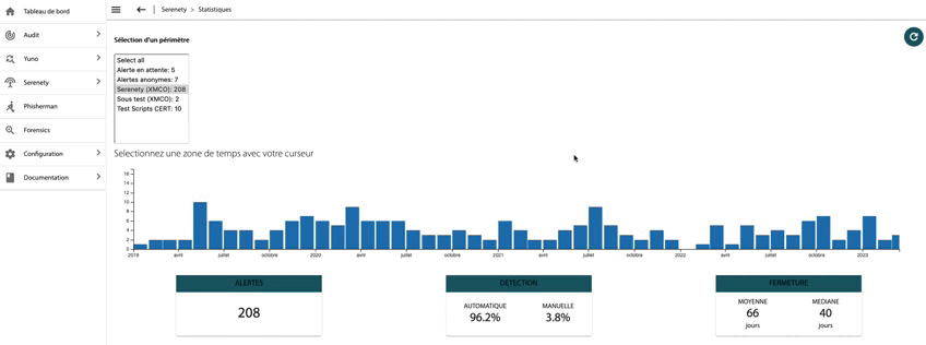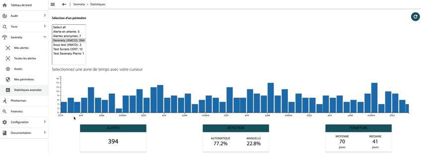 - 1 menu proposant un choix des périmètres sous surveillance Serenety