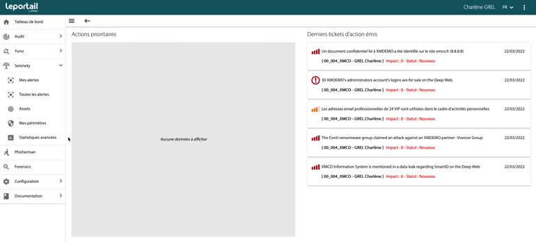- Les principales statistiques de votre surveillance (nombre d'alertes depuis la souscription au service, types de détection, durée de fermeture des alertes)